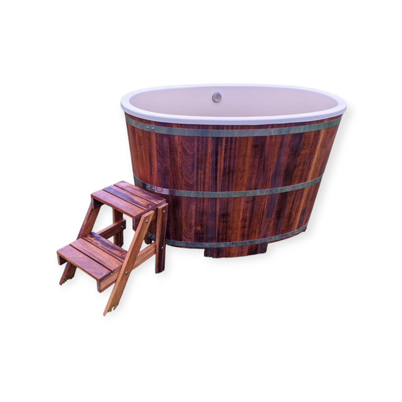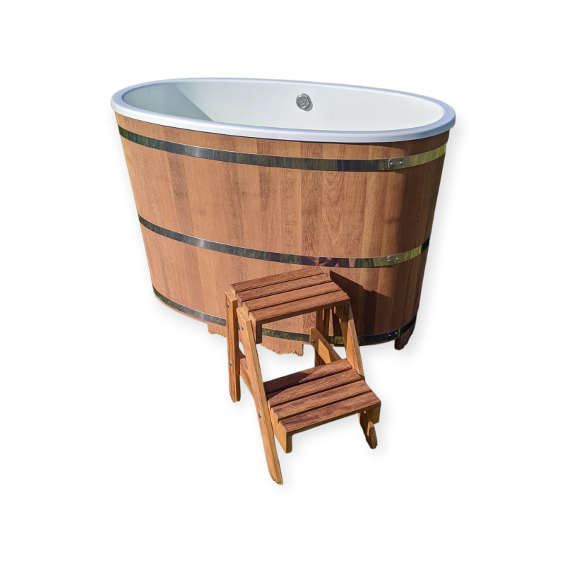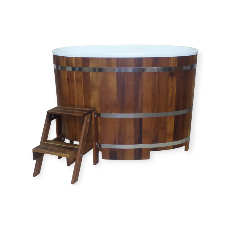 Drewniana balia z drewna egzotycznego iroko wkładem służy do schładzania się po wyjściu z sauny, czy łaźni. Świetnie sprawdza się do morsowania. Idealnie nadaje się do salonów spa&wellness, do kąpieli w solance, w borowinie czy piwie.