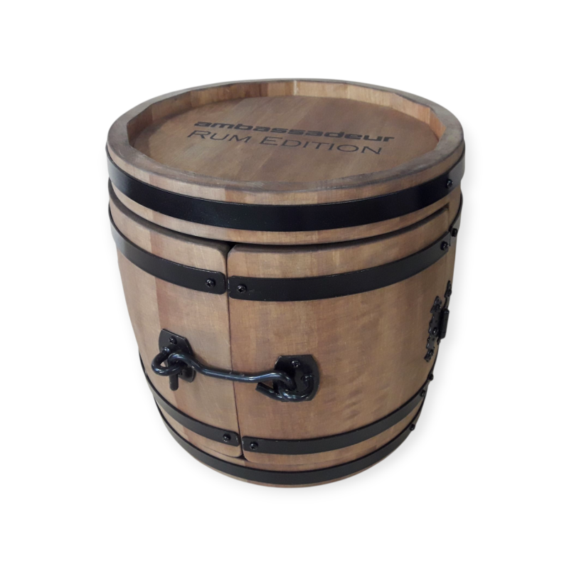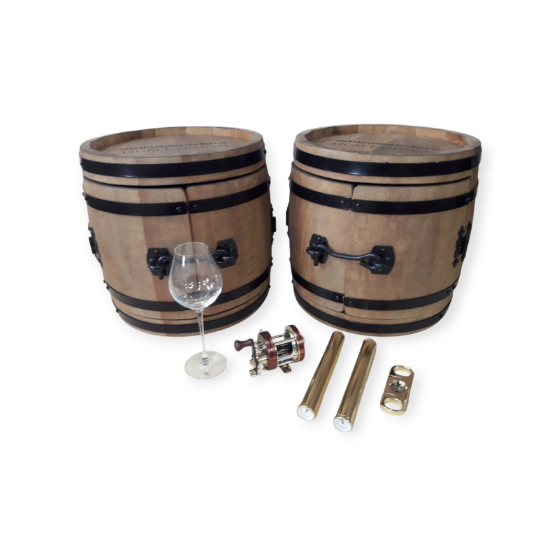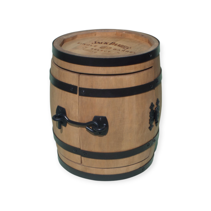 Beczka o wysokości 36 cm z z dwoma dnami i bokami otwieranymi na zawiasach. Świetnie nadaje się jako opakowanie prezentowe. Zaprojektowana jest tak by można było włożyć butelkę alkoholu, kieliszki lub szklanki. Oczywiście można ją wykorzystać jako opakowanie prezentowe na inne produkty np. miód, gadżety itp.