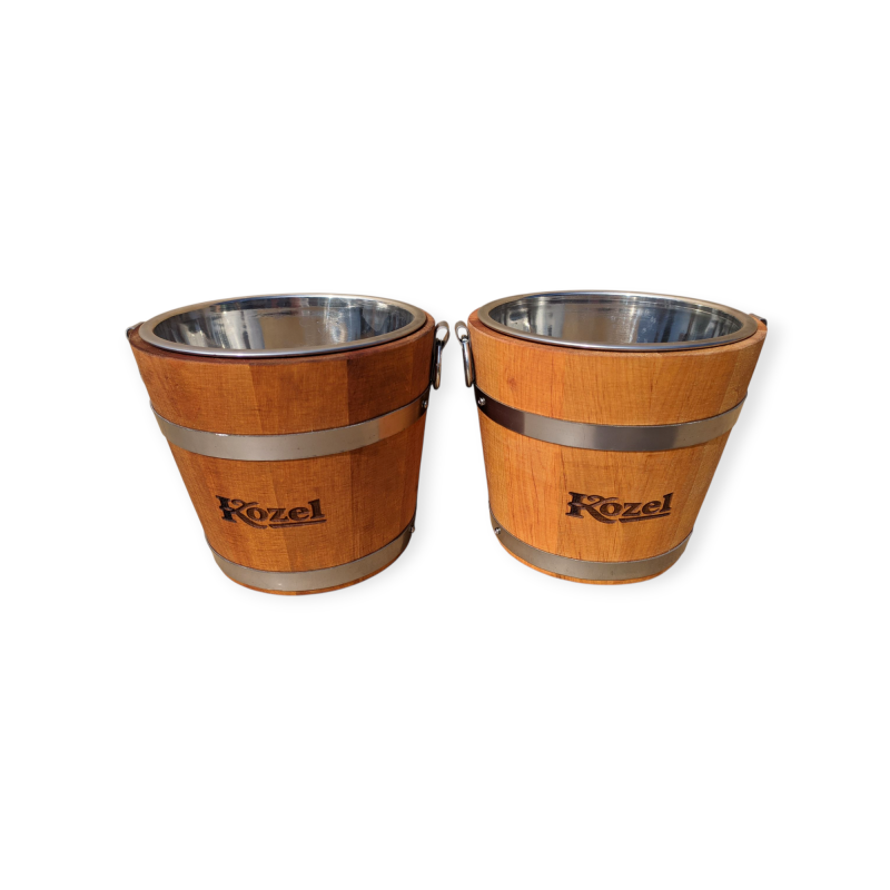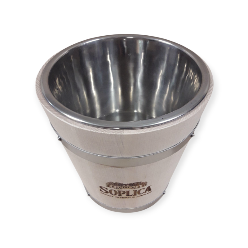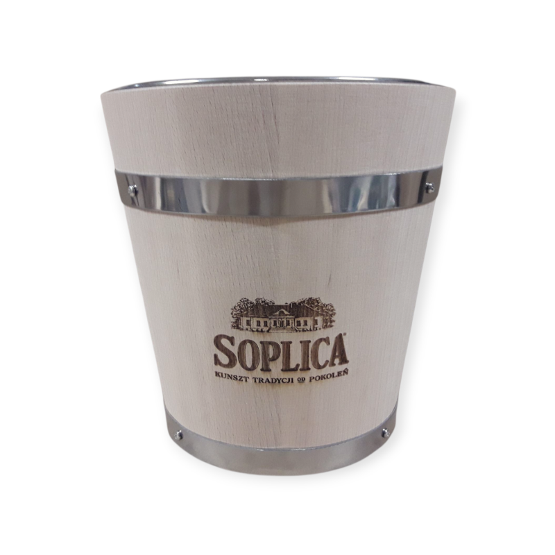 Wiaderko wykonane jest z drewna olchowego przez doświadczonego bednarza. Klepki zostały ściśnięte ręcznie nitowanymi obręczami. Korpus został sklejony i wyszlifowany. W standardzie możemy zaimpregnować beczkę olejem, czy wybarwić na dowolny kolor. Wiaderko posiada metalowy wkład i uchwyty (gałka lub kółko) W cenę coolera wliczono grawer laserowy.