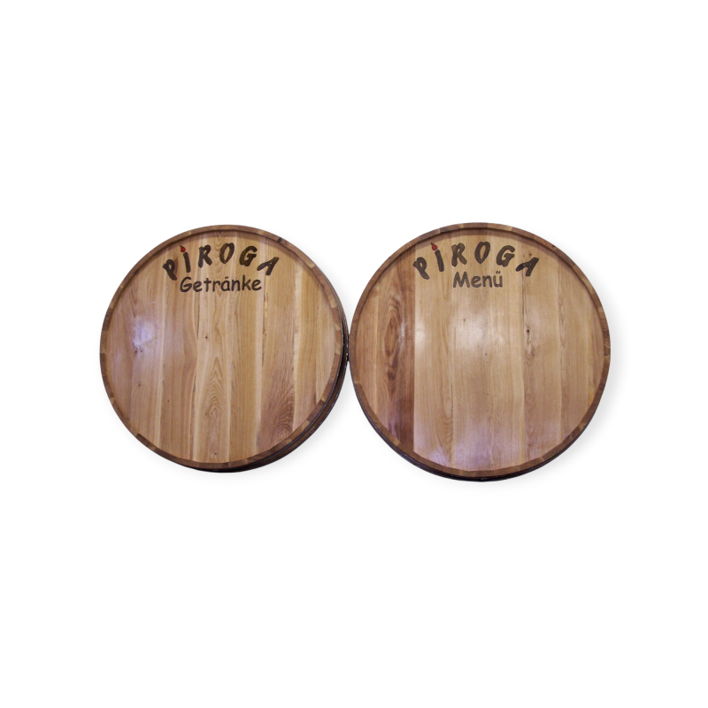 Drewniany front imitujący dno beczki świetnie nadaje się jako element reklamowy bądź dekoracyjny. Można powiesić go na ścianie, lub postawić na stole. Świetnie nada się jako taca. Całość dopełnić może wypalenie loga laserem, druk uv, logo malowane farbą lub frezowaniem cnc. Zapraszam do wyceny brandingu.