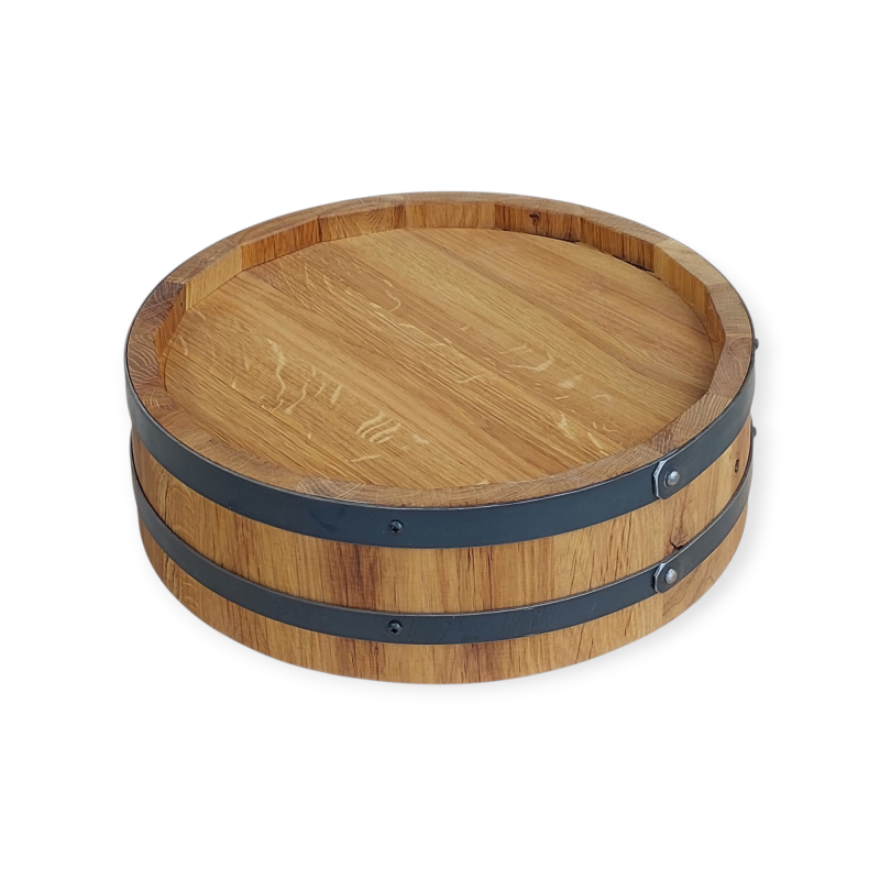 Drewniany front imitujący dno beczki świetnie nadaje się jako element reklamowy bądź dekoracyjny.