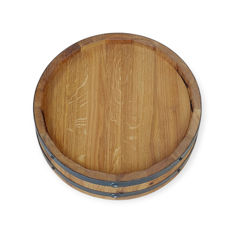 Front wykonany z drewna dębowego przez doświadczonego bednarza. Złożony z klepek, ściśniętych metalowymi, ręcznie nitowanymi obręczami. Korpus i dno wykonane są z drewna litego. Całość została sklejona wysokiej klasy klejem wodoodpornym, następnie wyszlifowana i zaimpregnowana olejem lnianym. Obręcze zostały przymocowane na wkręty. Na życzenie klienta wyrób może być wybarwiony na ustalony kolor. W standardzie obręcze wykonane ze stali czarnej. Istniej możliwość wykonania obręczy ze stali ocynkowanej lub nierdzewnej. Istnieje możliwość domówienia stojaka, bądź piramidki z frontów. Możemy dołożyć imitację kranu.