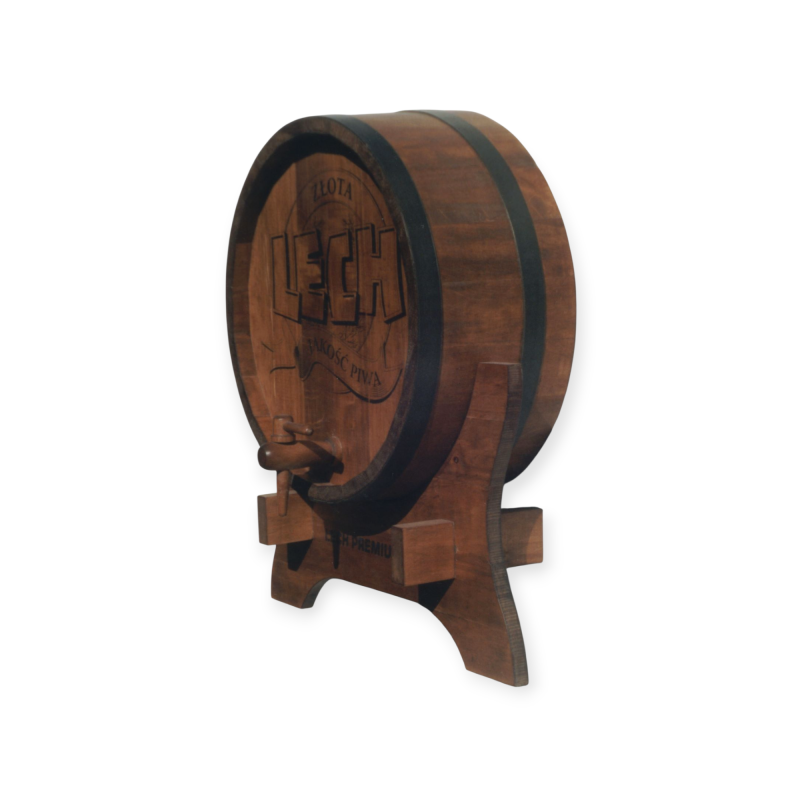 Drewniany front imitujący dno beczki świetnie nadaje się jako element reklamowy bądź dekoracyjny.