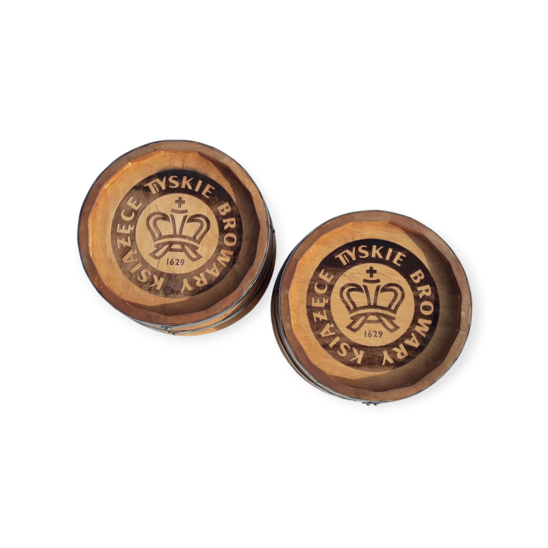 Drewniany front imitujący dno beczki świetnie nadaje się jako element reklamowy bądź dekoracyjny. Można powiesić go na ścianie, lub postawić na stole. Świetnie nada się jako taca. Całość dopełnić może wypalenie loga laserem, druk uv, logo malowane farbą lub frezowaniem cnc. Zapraszam do wyceny brandingu.
