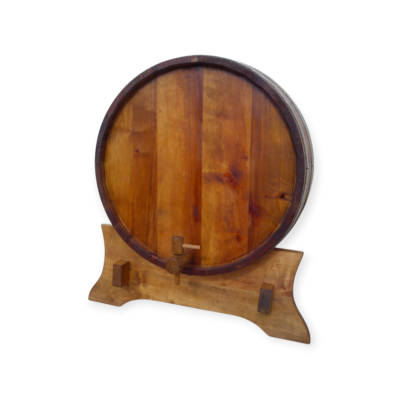 Front wykonany z drewna olchowego przez doświadczonego bednarza. Złożony z klepek, ściśniętych metalowymi, ręcznie nitowanymi obręczami. Korpus i dno wykonane są z drewna litego. Całość została sklejona wysokiej klasy klejem wodoodpornym, następnie wyszlifowana i zaimpregnowana olejem lnianym. Obręcze zostały przymocowane na wkręty. Na życzenie klienta wyrób może być wybarwiony na ustalony kolor. W standardzie obręcze wykonane ze stali czarnej. Istniej możliwość wykonania obręczy ze stali ocynkowanej lub nierdzewnej. Istnieje możliwość domówienia stojaka, bądź piramidki z frontów. Możemy dołożyć imitację kranu.