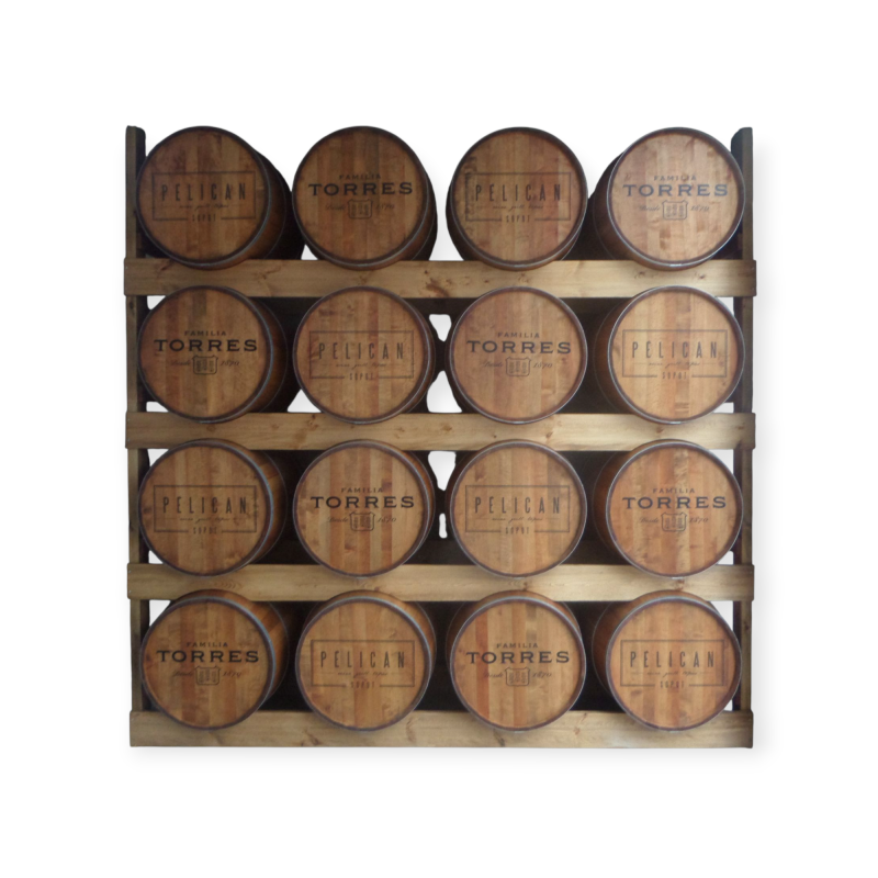 Drewniany front imitujący dno beczki świetnie nadaje się jako element reklamowy bądź dekoracyjny.