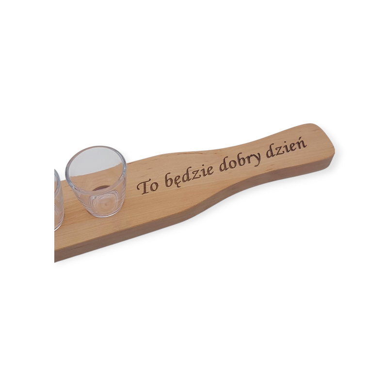 Proponujemy Państwu spersonalizowaną deskę do serwowania shotów. Świetnie nadaje się jako element wyposażenia barów, restauracji. Idealnie nadaje się do promocji marki, do degustacji trunków. Stanie się ciekawym prezentem na urodziny, czy inną okazję. W cenę wliczony jest projekt i grawer laserowy.
