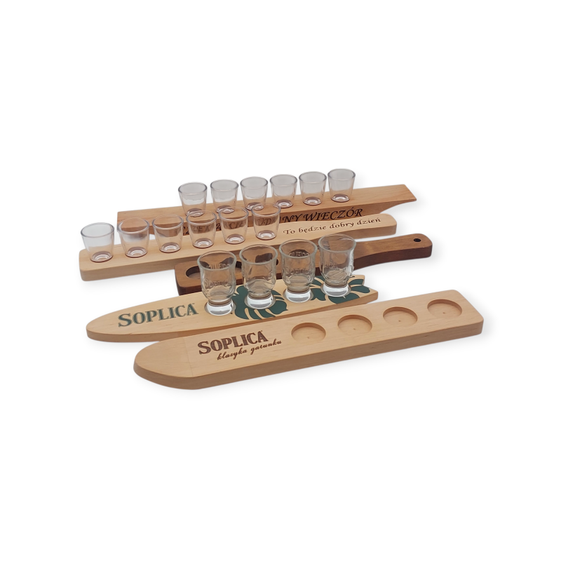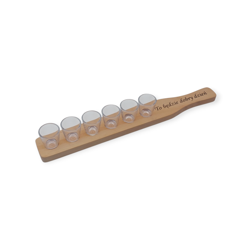 Proponujemy Państwu spersonalizowaną deskę do serwowania shotów. Świetnie nadaje się jako element wyposażenia barów, restauracji. Idealnie nadaje się do promocji marki, do degustacji trunków. Stanie się ciekawym prezentem na urodziny, czy inną okazję. W cenę wliczony jest projekt i grawer laserowy.